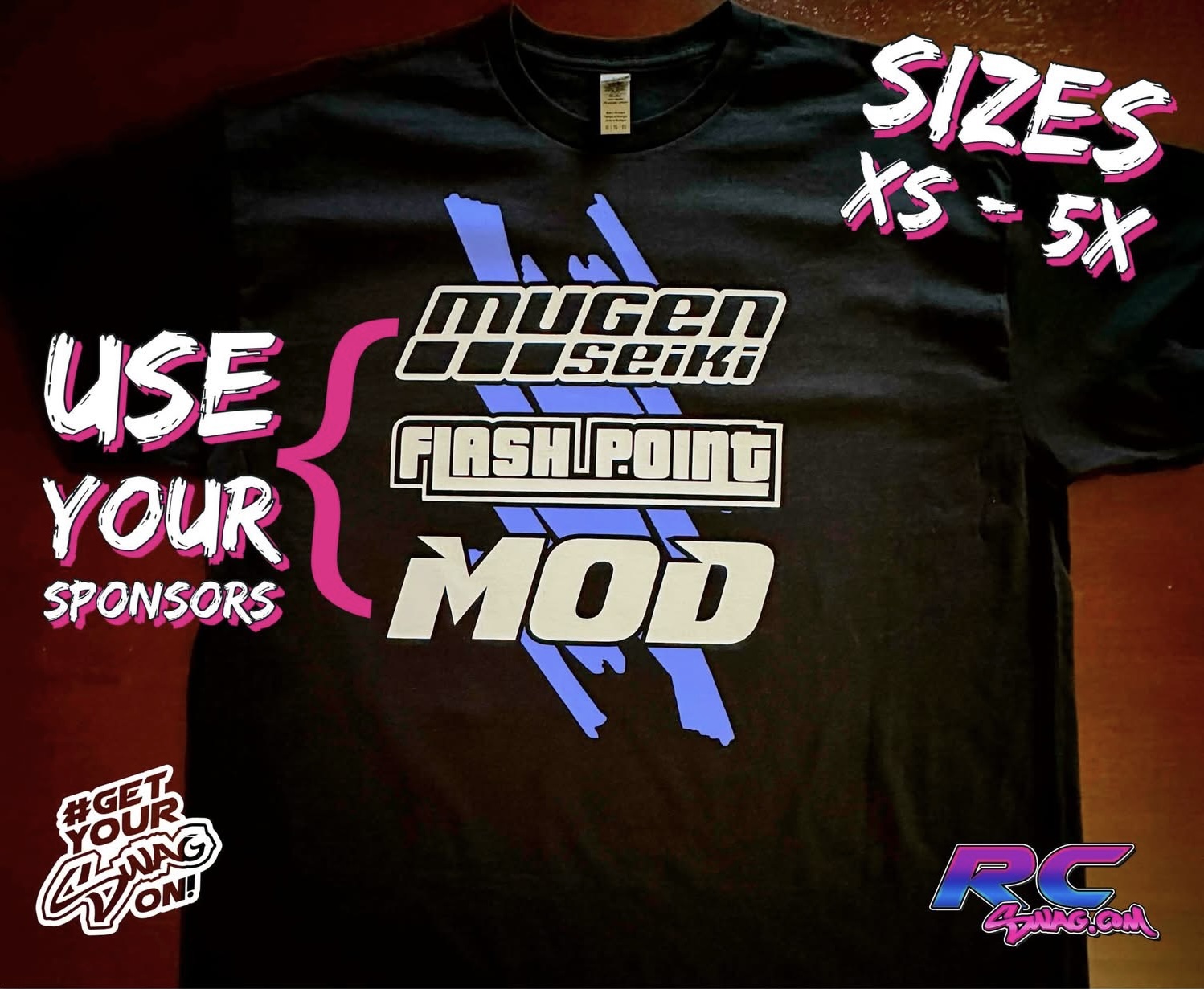 Choose from any of our custom sponsor logo style designs like our most popular Distressed American Flag, GRID, Paint, or Checker Flag to name a few. Β Add your logo, sponsor logos or custom text. Mention the apparel design style you like in the βCustom Requestβ field when ordering any of our RC SWAG apparel!
